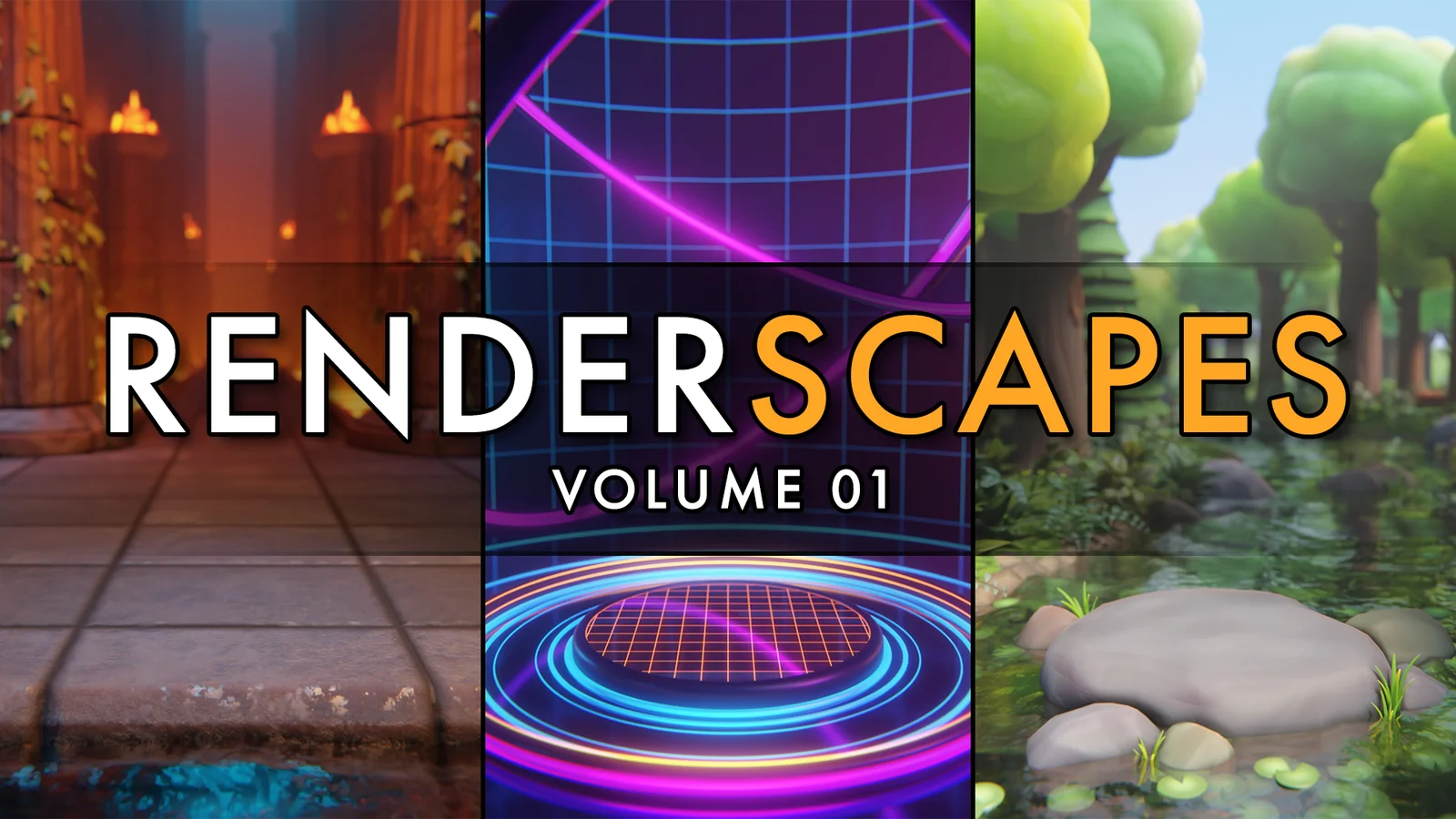 This collection contains three distinct ready-to-render environments designed to present characters and objects within thematic settings. The included scenes provide a dungeon, a forest, and a sci-fi environment, each built entirely with procedural materials to remove the need for external texture linking.