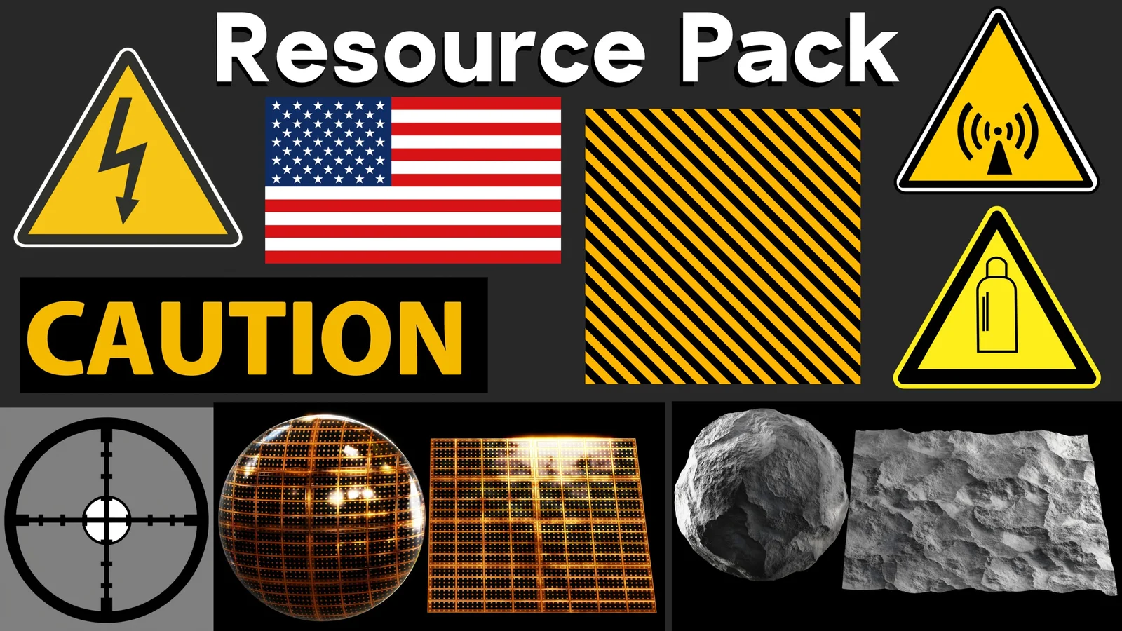 A supplemental resource pack containing assets needed to follow along with the Lunar Lander 3D modeling tutorial series. The collection includes procedural materials for a gold solar panel and a moon surface. It also provides various image decals, including caution signs, electrical labels, and a USA flag, alongside scale blueprints and matcap references.