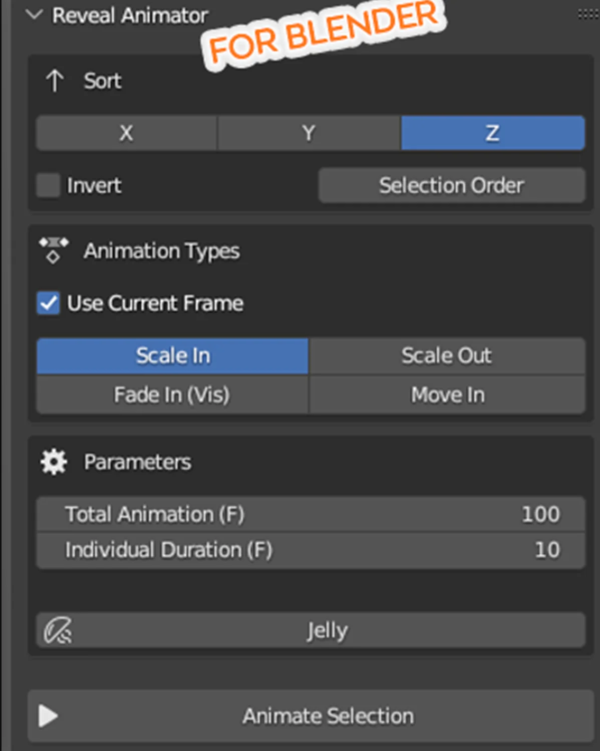 Reveal Animator is an automation tool that simplifies the creation of staggered reveal animations. The tool controls animation timing, allowing users to generate sequences based on selection order or spatial directions such as bottom-to-top or left-to-right. It provides dedicated animation modes for object scaling, visibility fading, and moving objects into position.