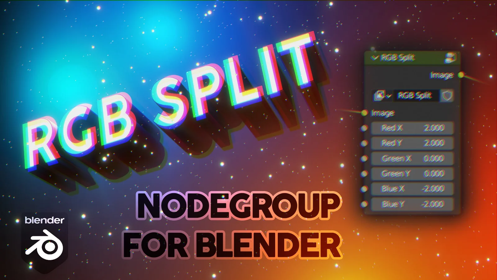 RGB Split Node is a custom node group designed for Blender's compositor. It separates and displaces the individual red, green, and blue color channels in a render output to produce chromatic aberration, glitch, and psychedelic color effects.