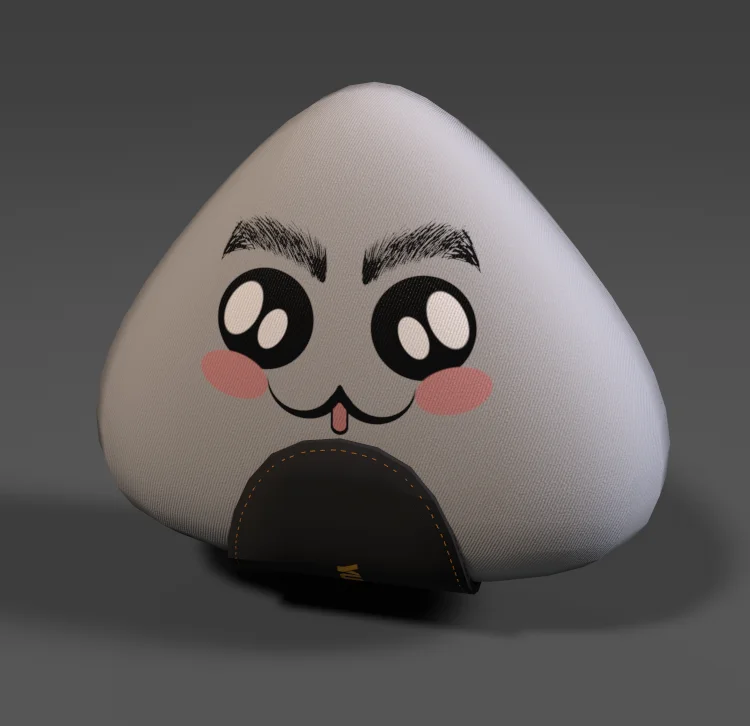 A low-poly 3D model of a rice plushie created in Blender. The model features a simple two-bone rig for basic posing and includes a single material. It is lightweight, consisting of 524 vertices and 1,040 triangles, making it suitable for avatar accessories or simple scene props.