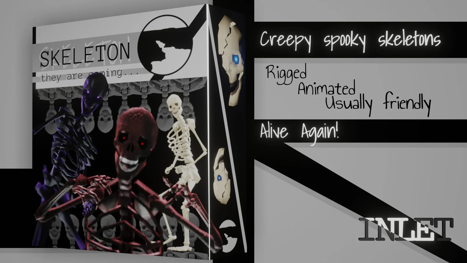 This is a rigged 3D model of a human skeleton, provided in both normal and advanced versions. The normal version features 91 bones, three shape keys, and four distinct texture skins for the osseous surfaces and teeth. The advanced version includes a comprehensive IK rig equipped with 21 control bones, 20 motion capture bones, and 15 shape keys.