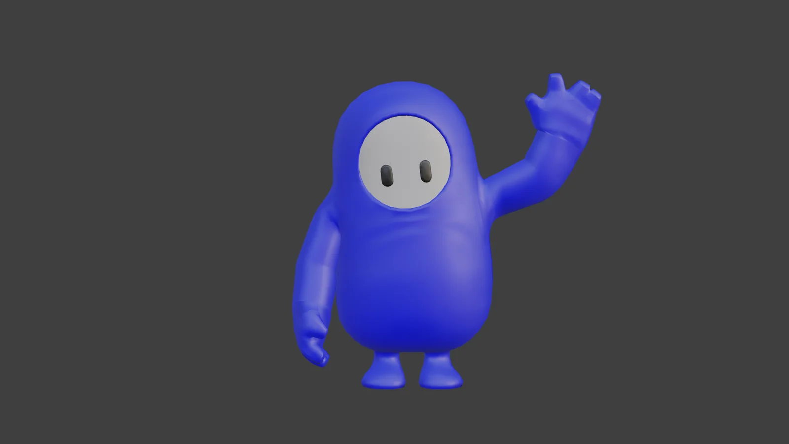 A fully modeled and rigged 3D character inspired by the game Fall Guys. The model includes a custom material setup within Blender to allow for interchangeable colors. The package provides the native Blender file containing the rig and textures, alongside exported geometry in FBX, OBJ, and Alembic formats.