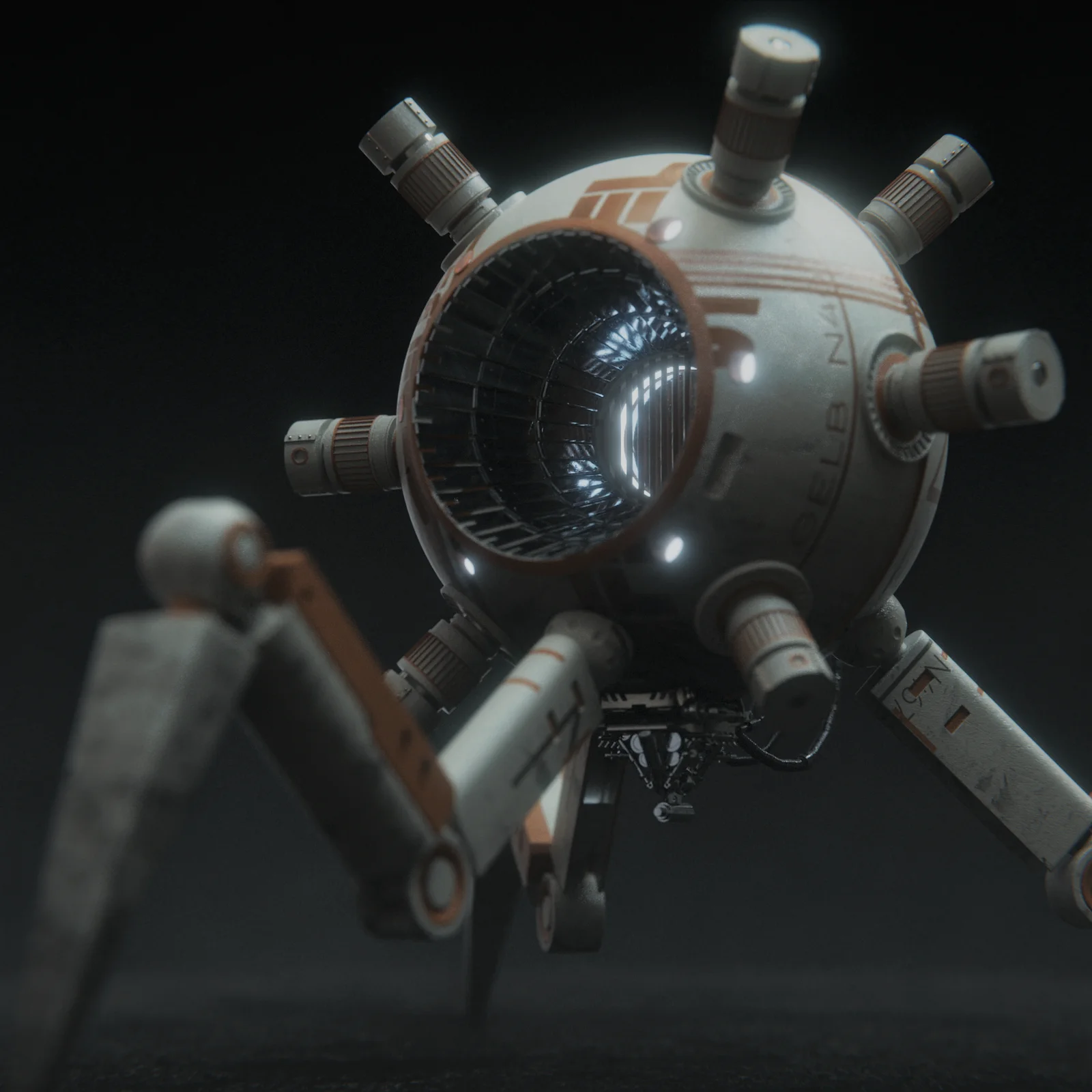 A 3D model of a sci-fi robot provided directly as a .blend file. The character is fully rigged and includes its own applied textures, ready to be posed and placed into science fiction environments. An HDRI map is also included alongside the model for environment lighting.