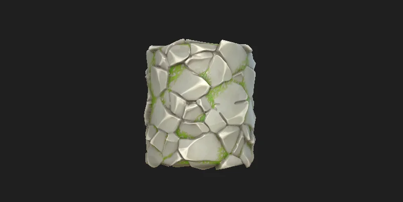 A stylized texture set combining rocky surfaces with overgrown grass. The material is provided in 2K resolution and includes standard PBR maps for ambient occlusion, base color, height, metallic, normal, and roughness. A Substance Designer (.sbs) source file is also included for users who want to modify the graph.
