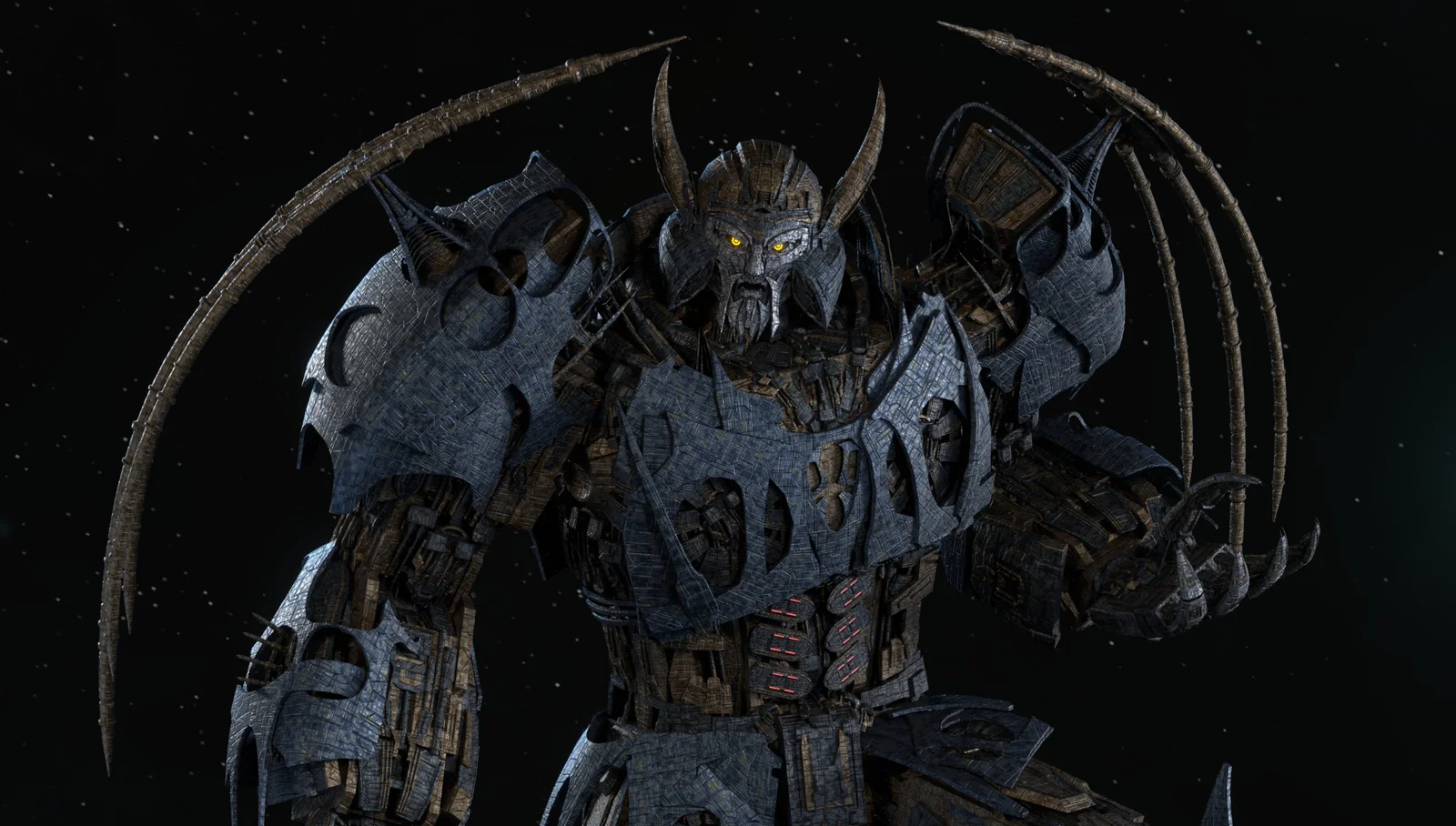 A fully rigged and textured 3D model of Unicron, inspired by the character's design in Transformers: Rise of the Beasts. The asset includes distinct configurations for both robot and planet modes. All necessary textures are packed directly into the provided Blender file.