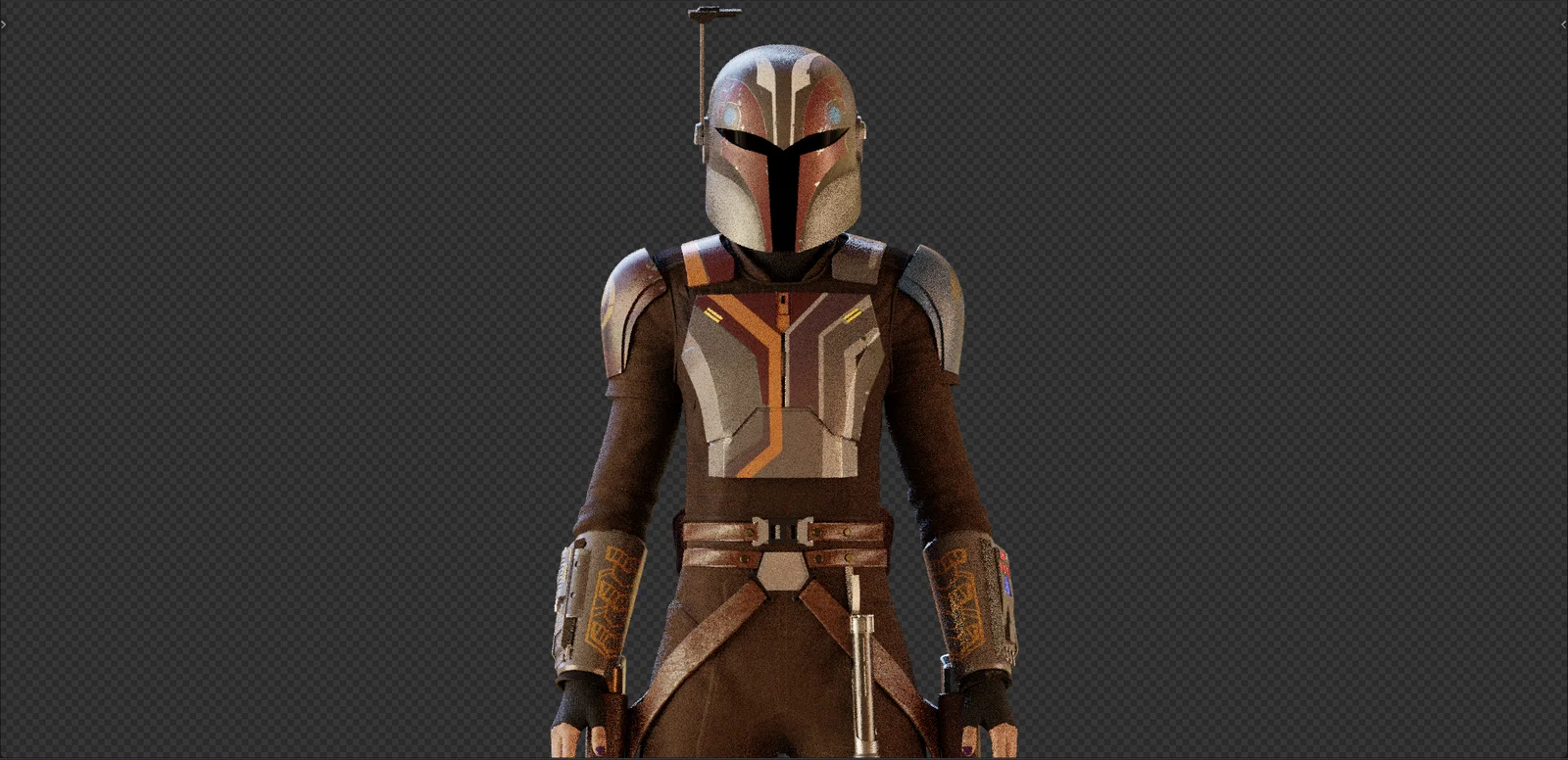 A rigged 3D character model of Sabine Wren based on her appearance in the Ahsoka series. The Blender file includes the fully textured character rig, along with three prepared pose assets. Additionally, the model comes with highly textured lightsaber and blaster props.