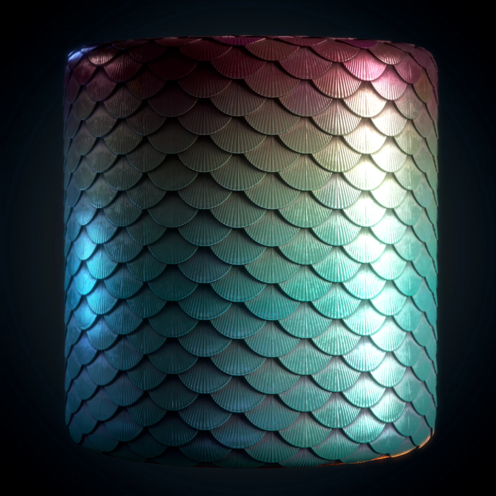 A procedural scale material featuring exported PBR texture maps for use in standard rendering pipelines. The package includes ambient occlusion, base color, diffuse, glossiness, height, metallic, normal, roughness, and specular maps.