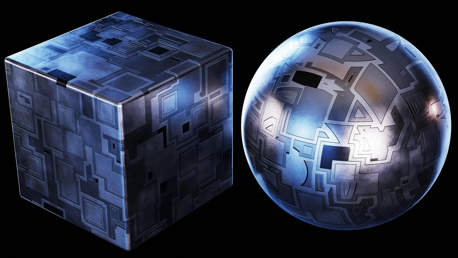 Sci-Fi Metal Greeble is a procedural material created using Blender's Shader Editor. The setup is consolidated into a custom node group that exposes several parameters for easy adjustments. Users can control properties such as scale, color, randomization, detail level, roughness, and bump intensity to customize the appearance of the sci-fi surface. The download includes the procedural material within a Blender file, along with the HDRI lighting setup used for the final render.