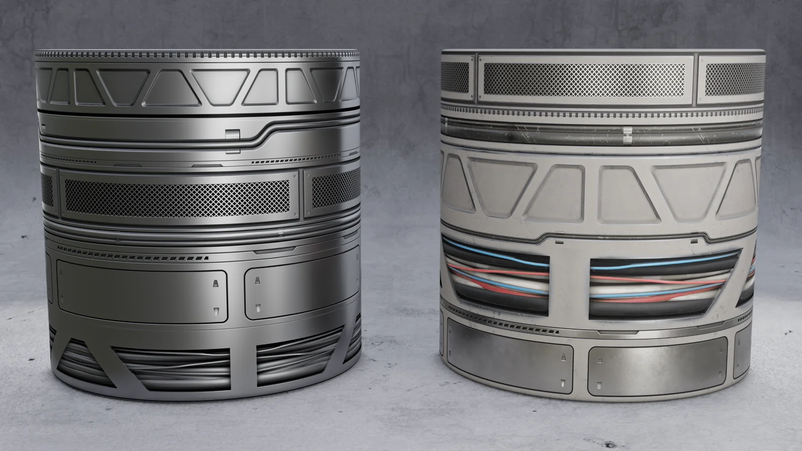 This product provides a collection of 4K texture maps designed for adding sci-fi hard-surface details to 3D models. It functions as a trim sheet, allowing users to apply intricate details without increasing geometry complexity. The pack includes maps for creating infinite texture variations using the provided ID map.