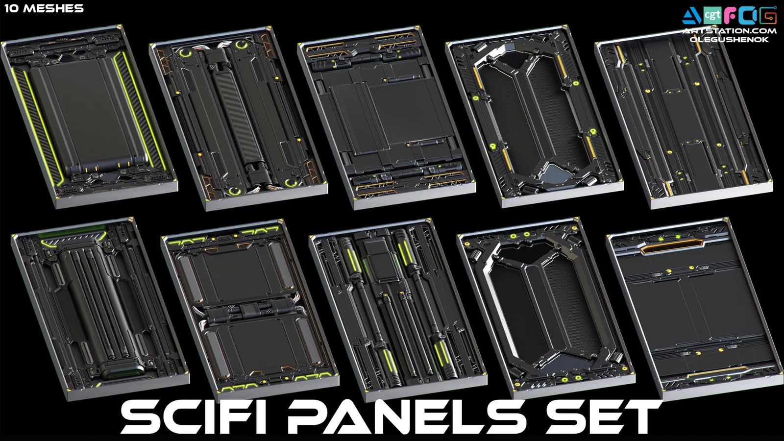 This collection includes 10 individual sci-fi panel 3D models. The assets are provided in the widely supported OBJ format, allowing them to be imported into Blender or any other major 3D software. They are suitable for kitbashing hard surface designs or detailing sci-fi environments.