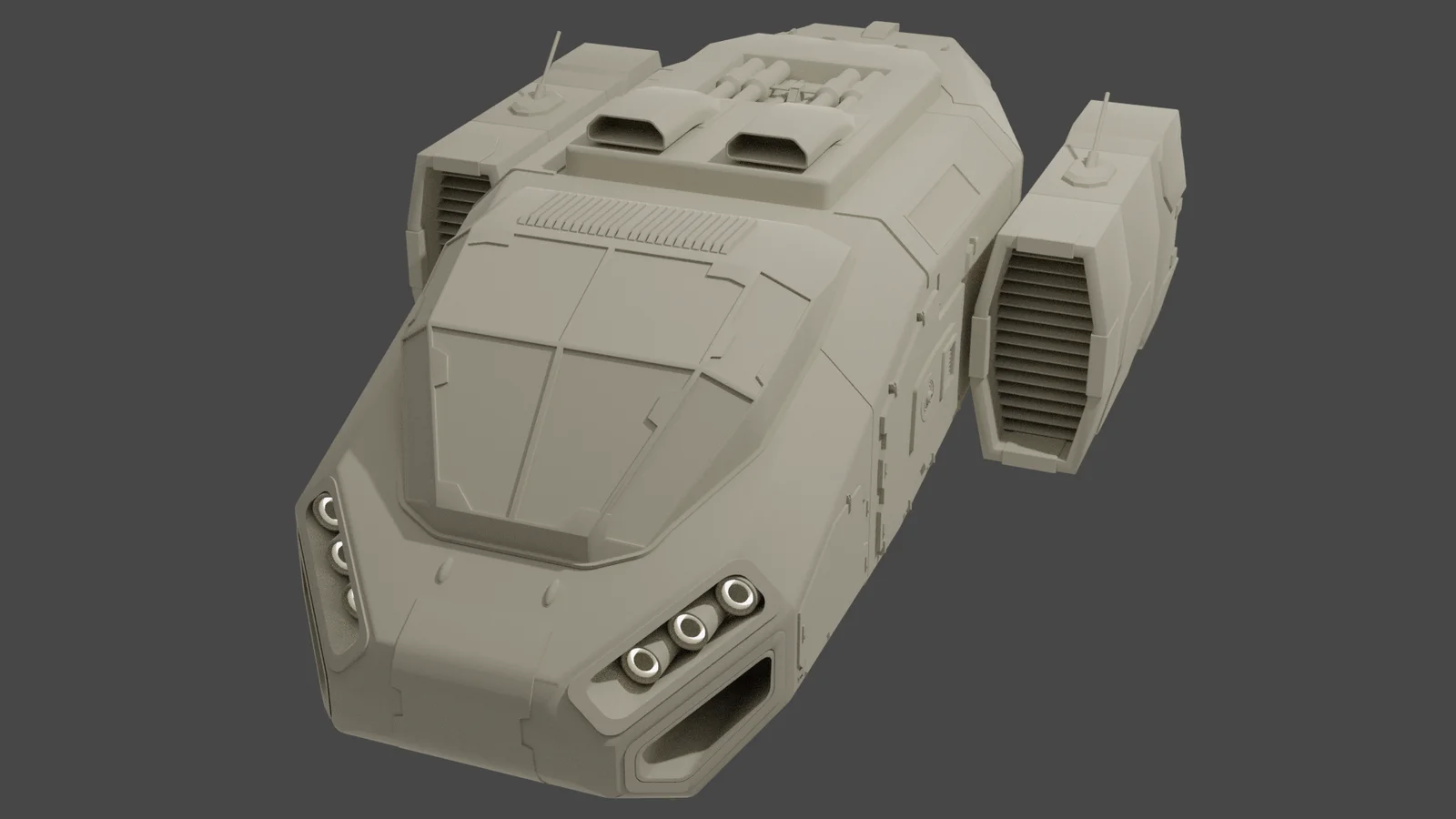 A 3D model of a sci-fi transport ship created in Blender. This asset is provided under a CC0 public domain license, allowing for unrestricted use in personal and commercial projects.