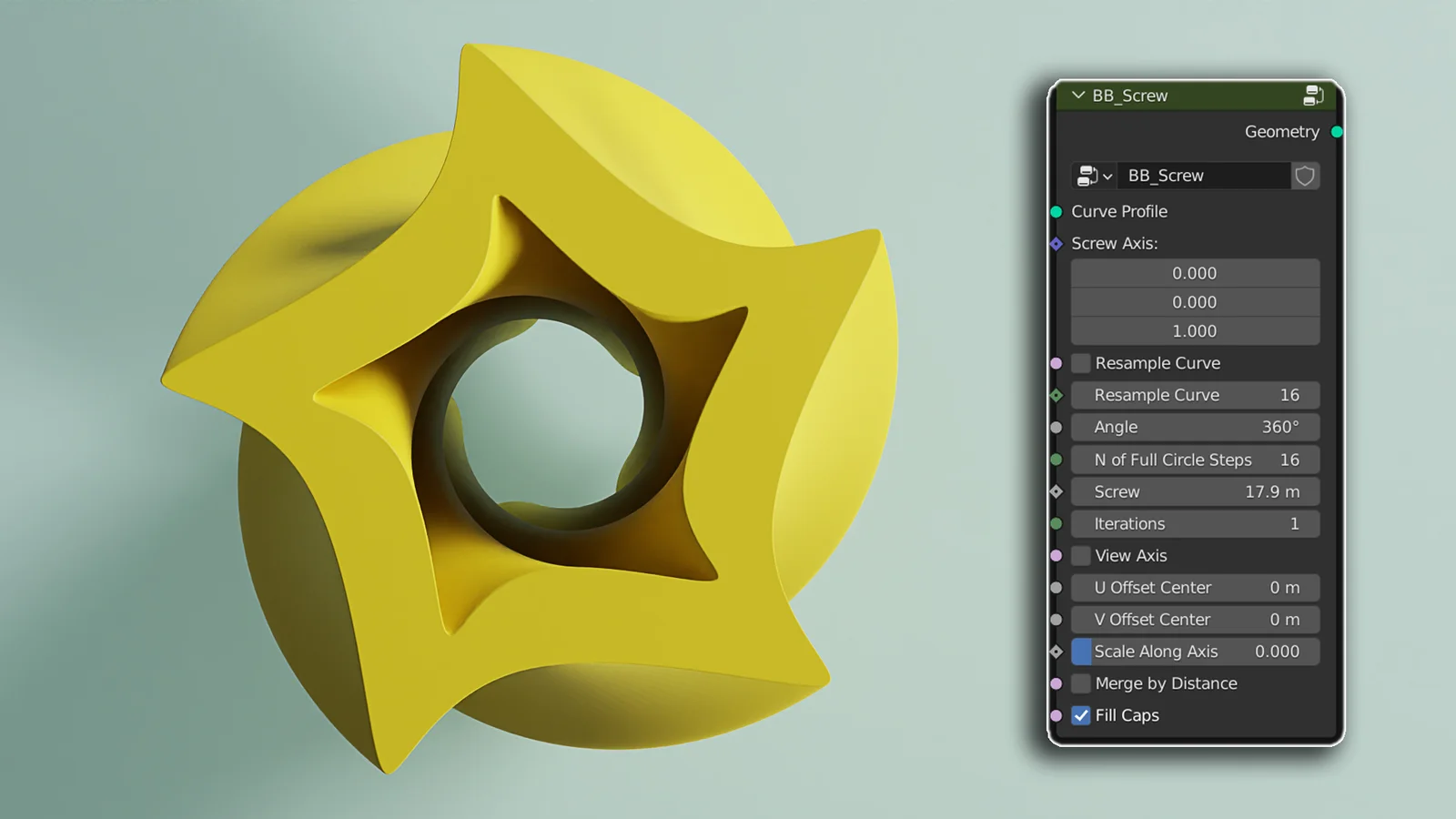 This geometry node setup replicates the functionality of Blender's native screw modifier. It allows users to generate screw-like shapes, spirals, and revolved geometry directly within a node-based workflow rather than relying on the modifier stack.
