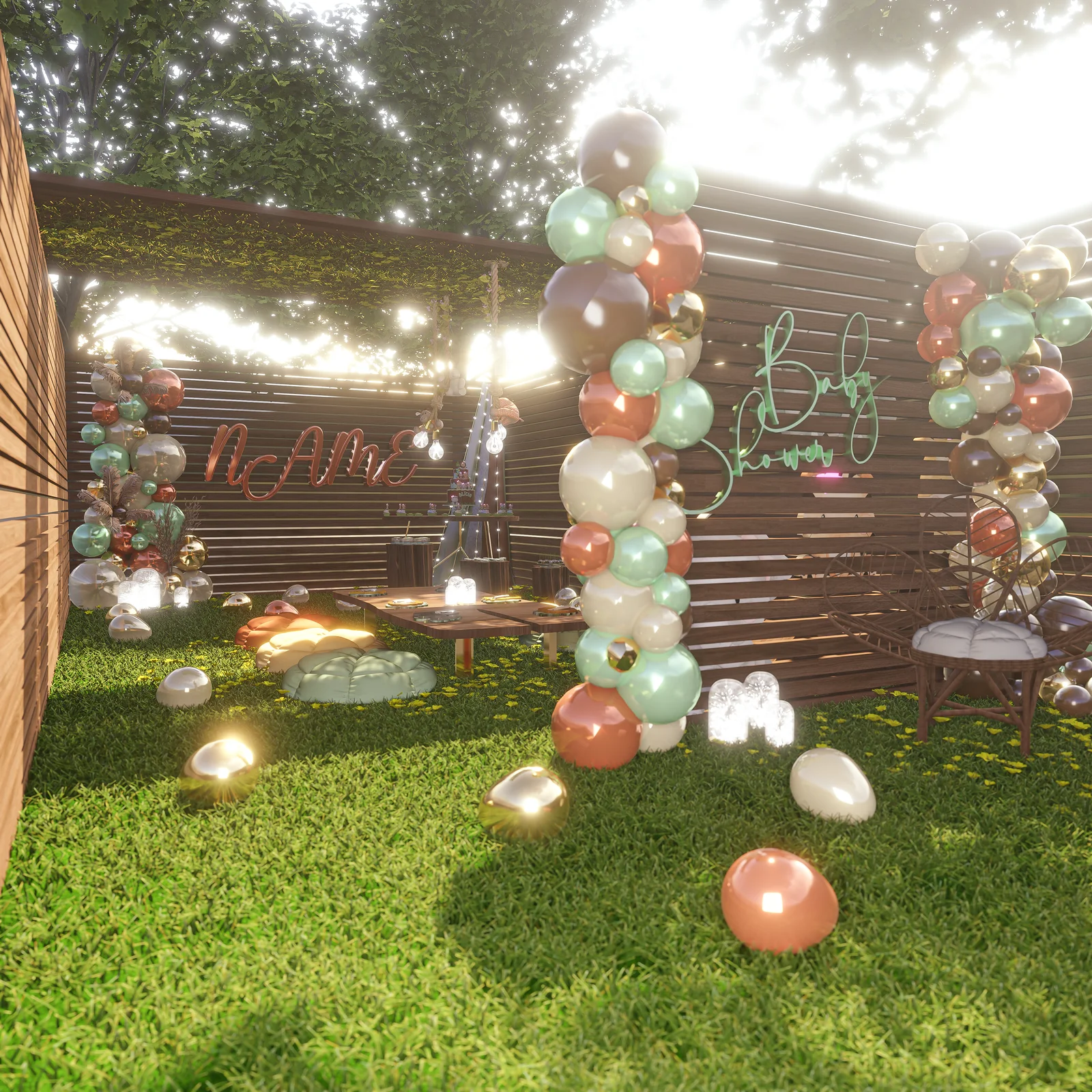 A zoo-themed baby shower environment prepared as a Blender scene. The file is set up for rendering in both the Eevee and Cycles render engines. Please note that the cake and sweets are not included in this asset.