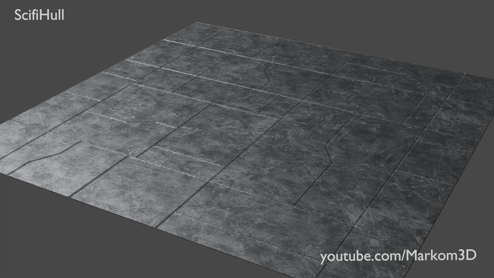 This texture pack provides a 4K seamless sci-fi hull material designed for detailing large spaceships and futuristic structures. The set includes five standard PBR texture maps: diffuse, height, normal, metallic, and roughness.