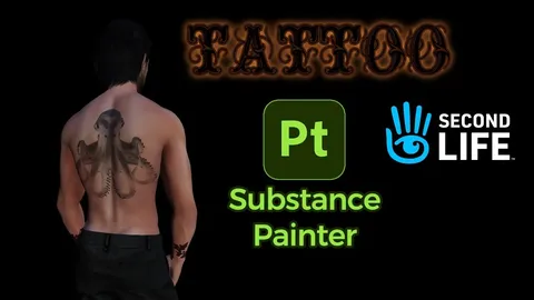 This is a 3D mesh model prepared for Blender featuring a UDIM UV template. It is designed specifically as a base for creating tattoo textures for Second Life Bento avatars, intended to be textured using software like Substance Painter.