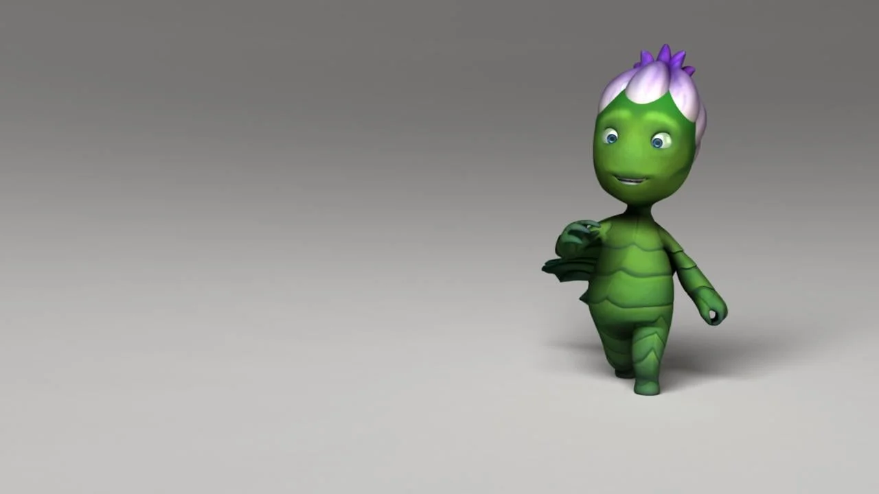 Seedling Rig is a rigged character model featuring a layered control system for animation. The rig includes IK and FK arms, space switching for the feet and cape, and a ribbon spine setup. It offers animation features like a toggle for squash and stretch on the torso and feet, as well as dynamic and FK cape controls. The character includes unique attributes such as independent or uniform blooming for its petals and a seasonal color blend transition from spring to fall.