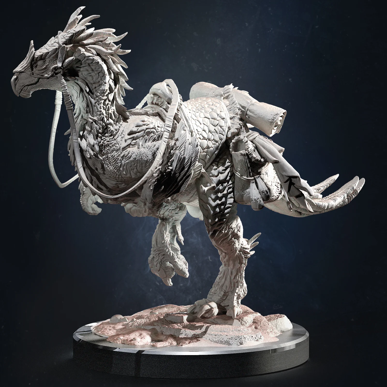 A 3D printable fan art model of a saddle, scaled at 1/10. The model is provided as split parts for assembly, with specific recommendations to use flexible resin for the rein components to ensure proper fitment. The assembled model measures 139mm in width, 220mm in height, and 274mm in depth.