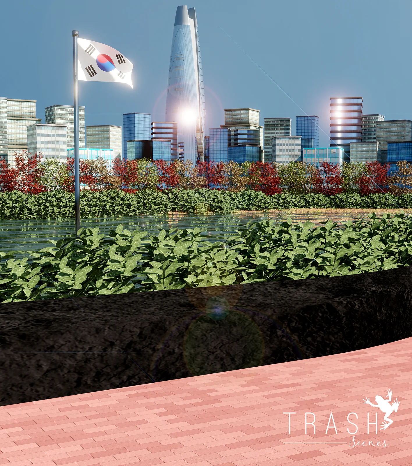 A complete 3D environment scene recreating Seokchon Lake in Seoul. Built using custom base models and textures, this detailed exterior setup is ready for rendering out of the box. The scene is compatible with both the Eevee and Cycles rendering engines, with optimal results achieved using Cycles.