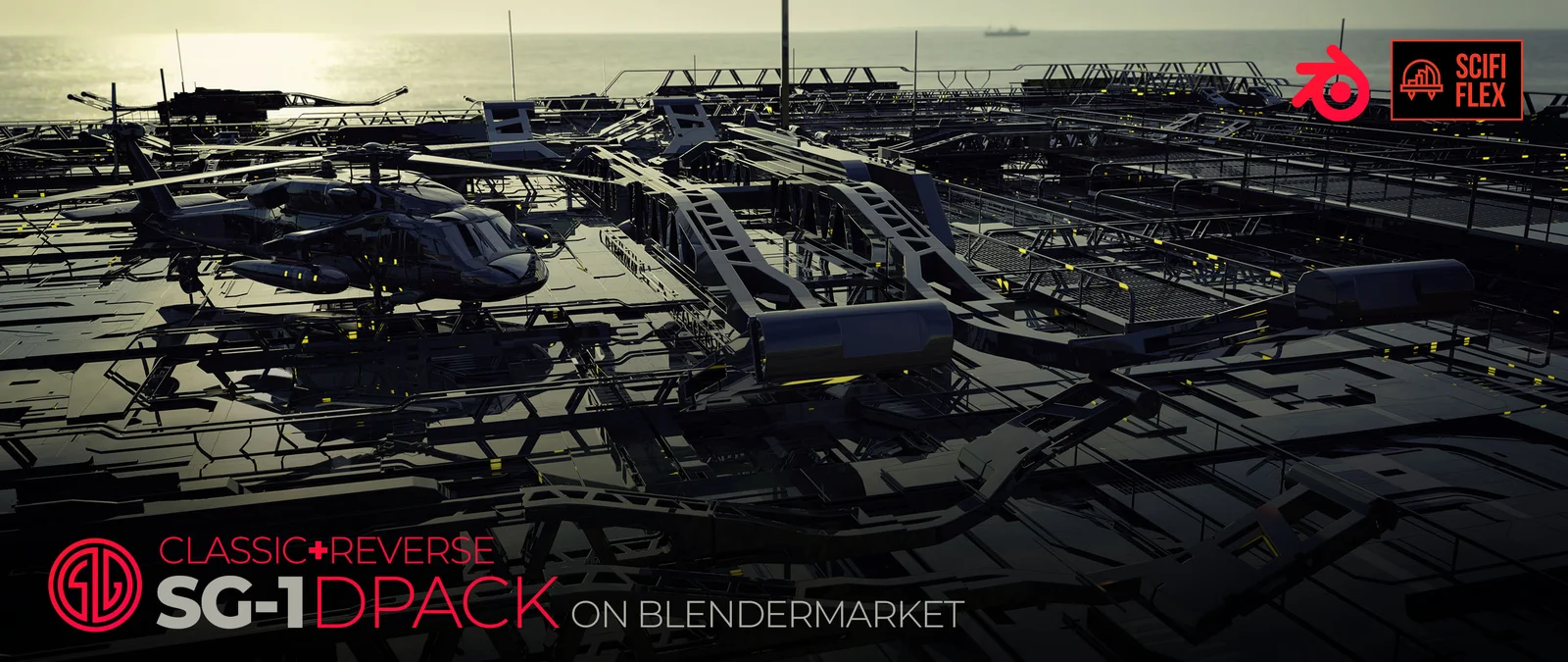 SG-1 Dpack is a collection of 3D meshes designed to be used with the Simple SciFi and SciFi Flex addons for Blender. These assets are intended for creating sci-fi, fantasy, or futuristic scenes. The pack integrates directly into the workflow of these specific addons, allowing users to generate complex geometry structures like distant cities or spaceship details.