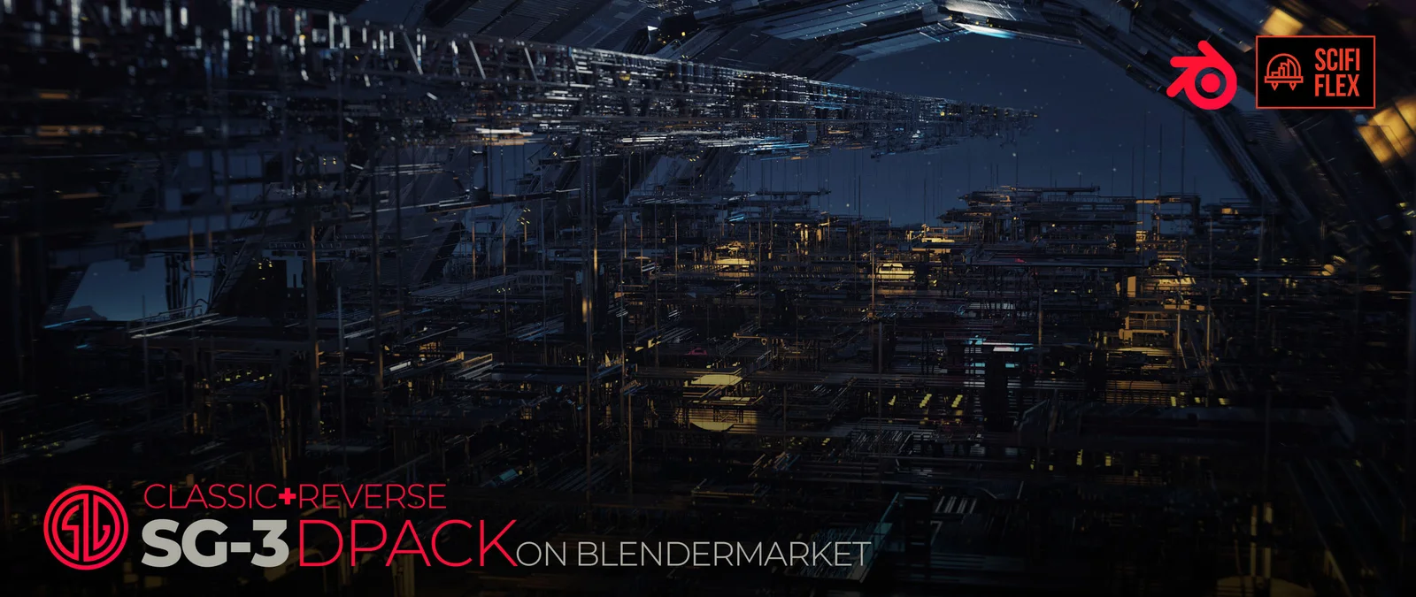 SG-3 DPACK is a mesh collection designed for use with the Simple SciFi and SciFi Flex add-ons. It provides geometry elements for generating sci-fi, fantasy, and futuristic environments through instancing. The assets can be used to quickly populate distant cityscapes or add complex surface details to spaceships and structural models.
