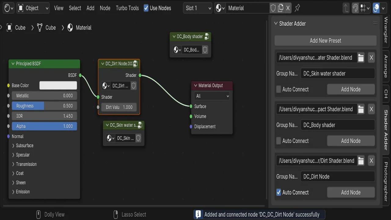 Shader Adder provides a system for saving custom node setups from any Blender file so they can be reused in other projects. This tool streamlines workflows by allowing users to maintain consistent node configurations and materials across multiple blend files without needing to manually append or rebuild them.