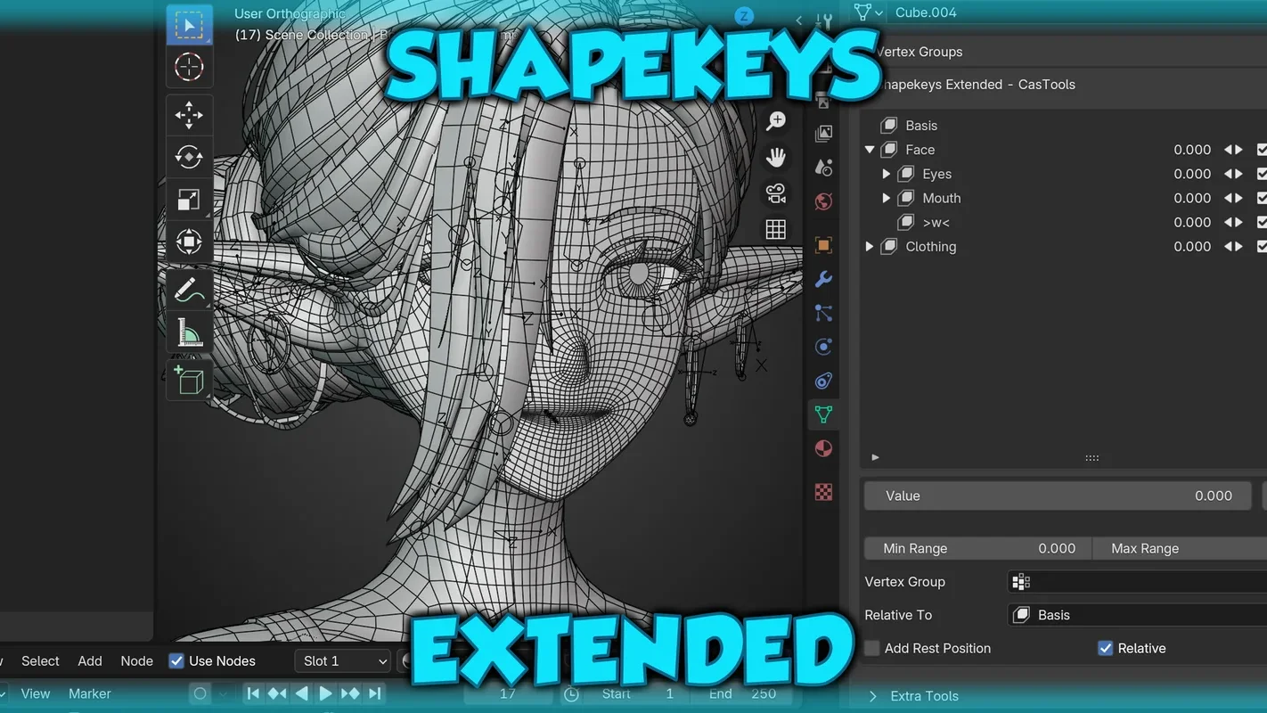Shapekeys Extended is an add-on that replaces and expands Blender's default shapekey panel. It introduces a hierarchical layout with collapsible groups, allowing users to organize and reorder shapekeys more effectively. The interface supports shapekey creation and editing directly in Edit Mode, and new shapekeys are added below the current selection rather than at the bottom of the list.