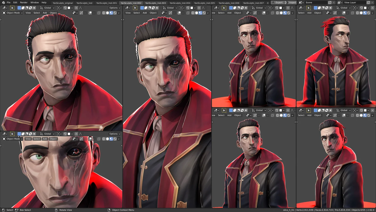 Alongside the process recording, the package includes the final project files. Users receive the complete .blend file featuring the finished character, applied materials, and lighting setup. An FBX export of the final result is also provided for compatibility with other 3D software, along with high-resolution reference renders.