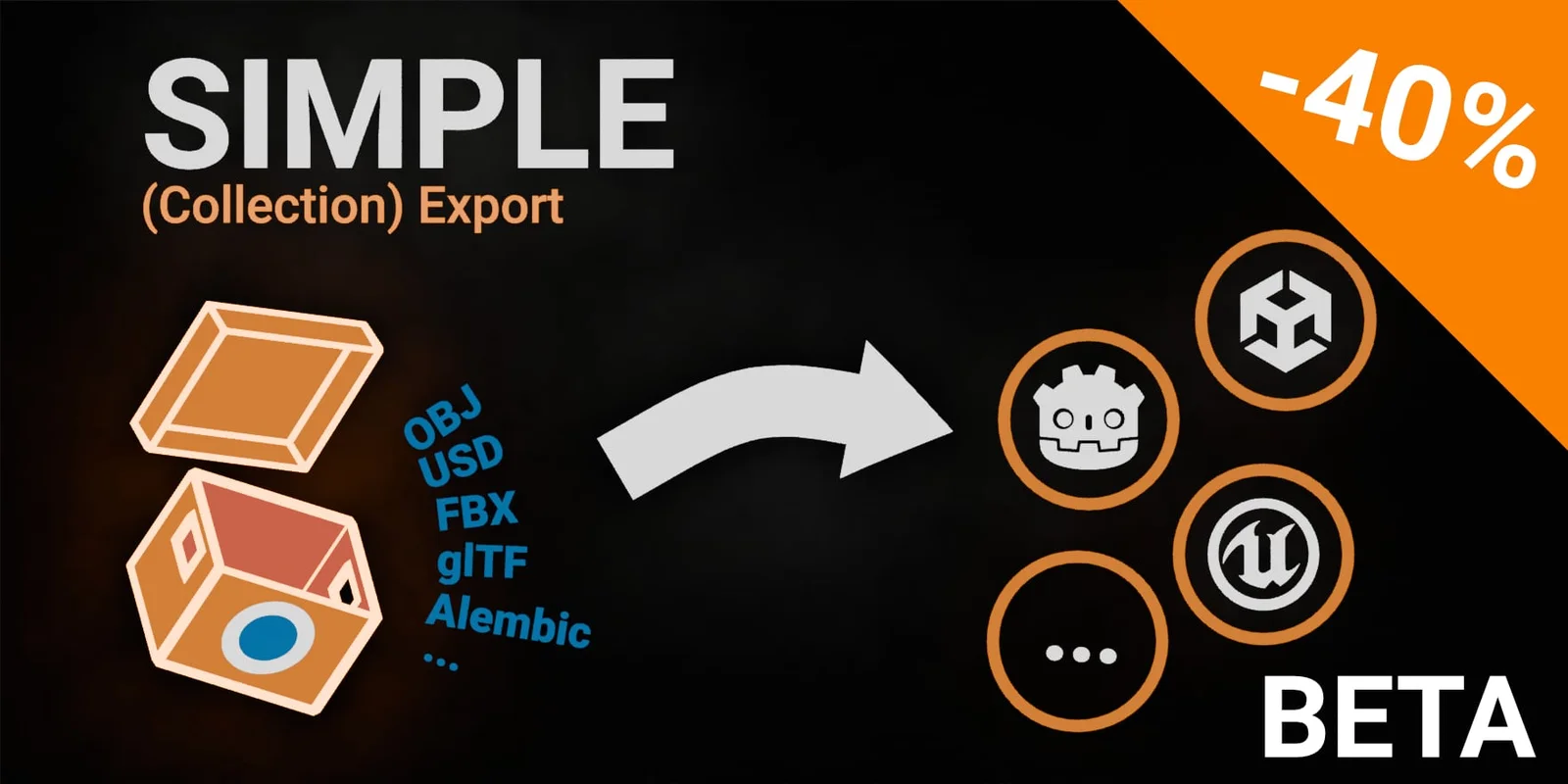Simple Export is an add-on that enhances Blender's native collection exporter by providing a centralized interface for managing export settings. It focuses on static mesh workflows and includes built-in presets for game engines like Unreal Engine, Unity, and Godot, as well as setups for asset baking.