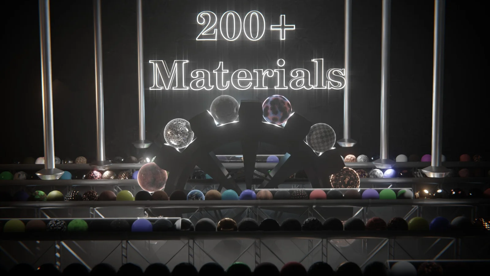 A collection of procedural materials designed for use in Blender's Asset Browser. The pack includes grouped shader nodes with adjustable properties and custom outputs for masks and albedo passes. Materials are compatible with both Cycles and EEVEE, covering a wide variety of surface types including glass, fluids, ceramics, fabric, ground, metal, plastic, stone, and wood. The collection also features EEVEE-specific cartoon shaders, volumetric effects, and world backgrounds.
