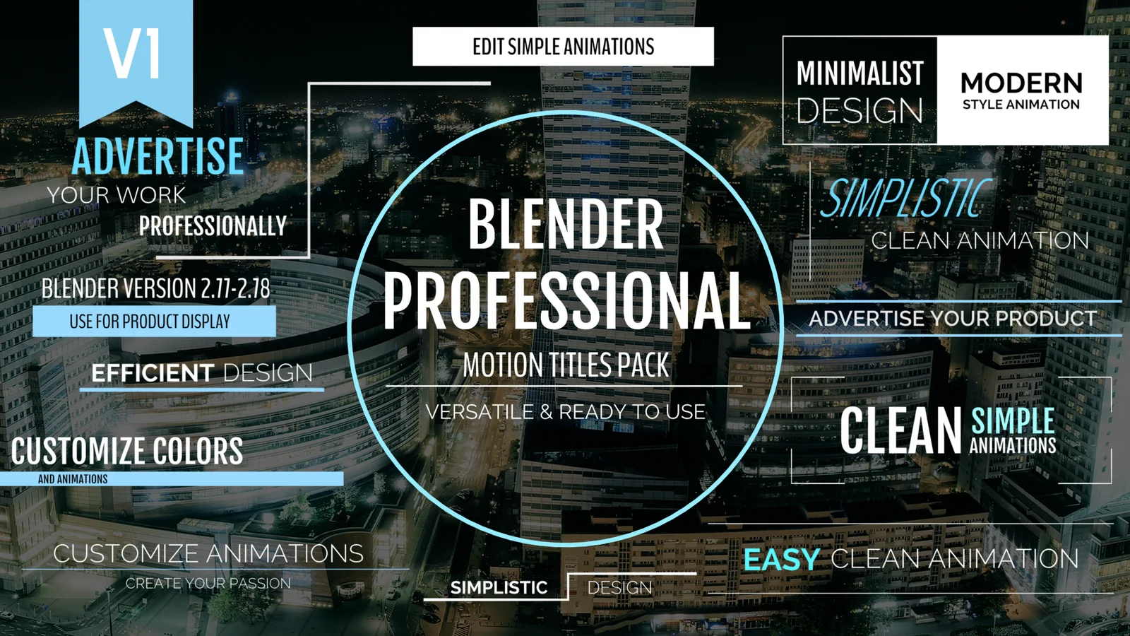 This is a pack of 20 animated typographic titles designed for motion graphics projects in Blender. The titles are set up across different render layers, allowing each layer to contain a unique animation. The files are configured for 1080p rendering and are ready for customization without the need for external plugins. A tutorial is included to guide users through the setup process.