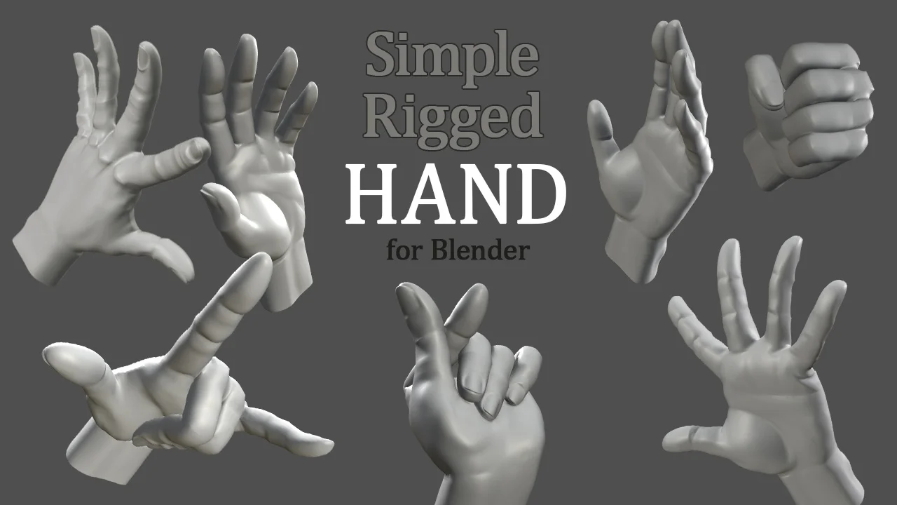 A simplified rigged hand model that relies entirely on weight painting for deformation, without the use of corrective shape keys. The existing weights allow for various hand poses to be achieved through the armature.