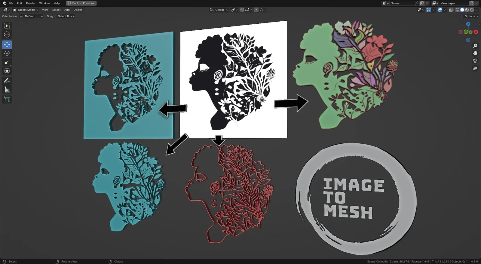 Sketch N' Trace is an add-on that converts imported images into 3D meshes or curve objects. Users can drag and drop standard image formats into the viewport and trace them directly. The conversion process includes adjustable settings for mesh resolution, extrusion, beveling, and generating outlines with variable thickness.
