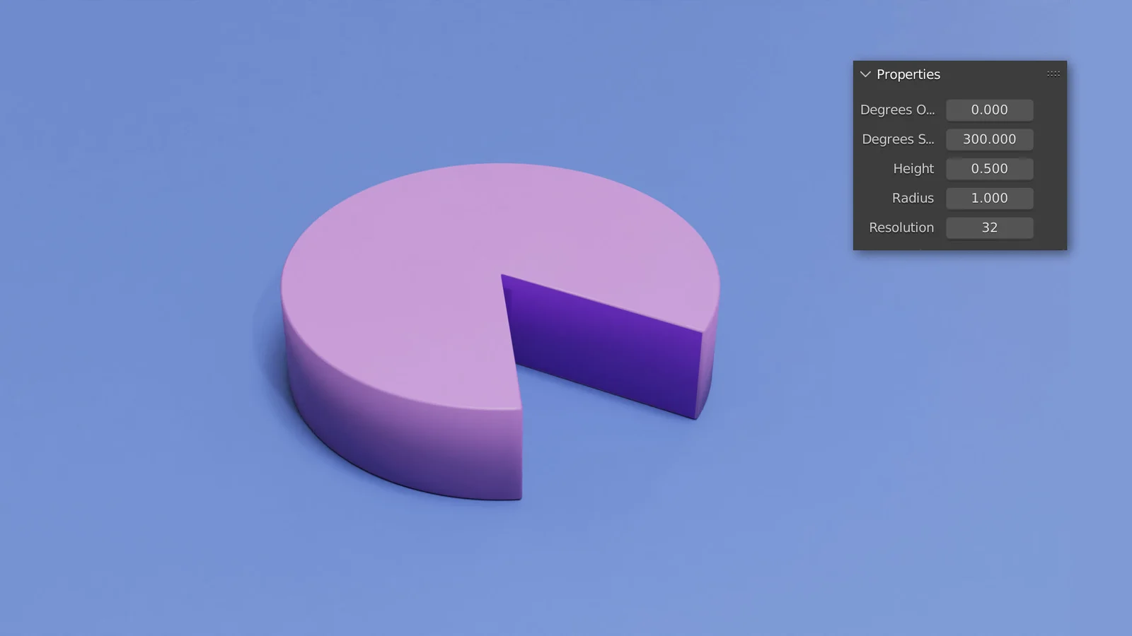 A procedural slice primitive generated using Geometry Nodes. The object allows users to create customizable radial sections, suitable for modeling pie charts, pies, and other segmented cylindrical shapes.