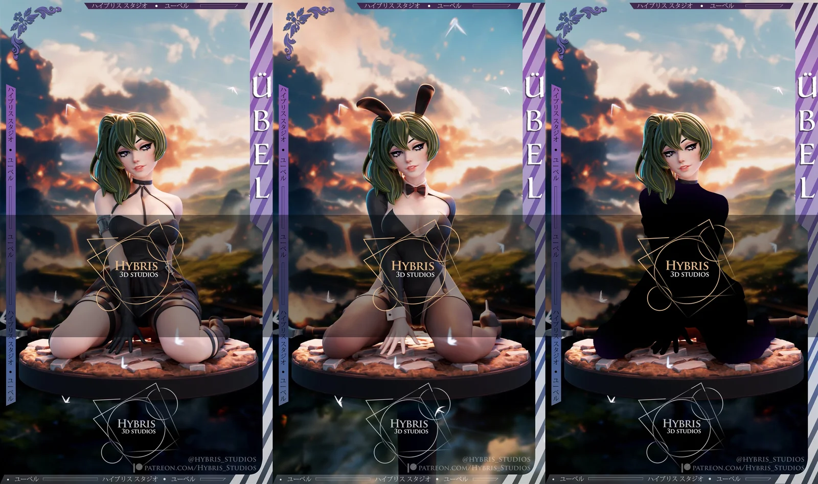 A 3D printable model of Ubel from Sōsō no Frieren, optimized for resin printing at a 1:7 scale. The package includes three display versions featuring three interchangeable heads, legs, and bases. The model is seamlessly sliced and keyed for assembly, and comes with both pre-supported and unsupported files.