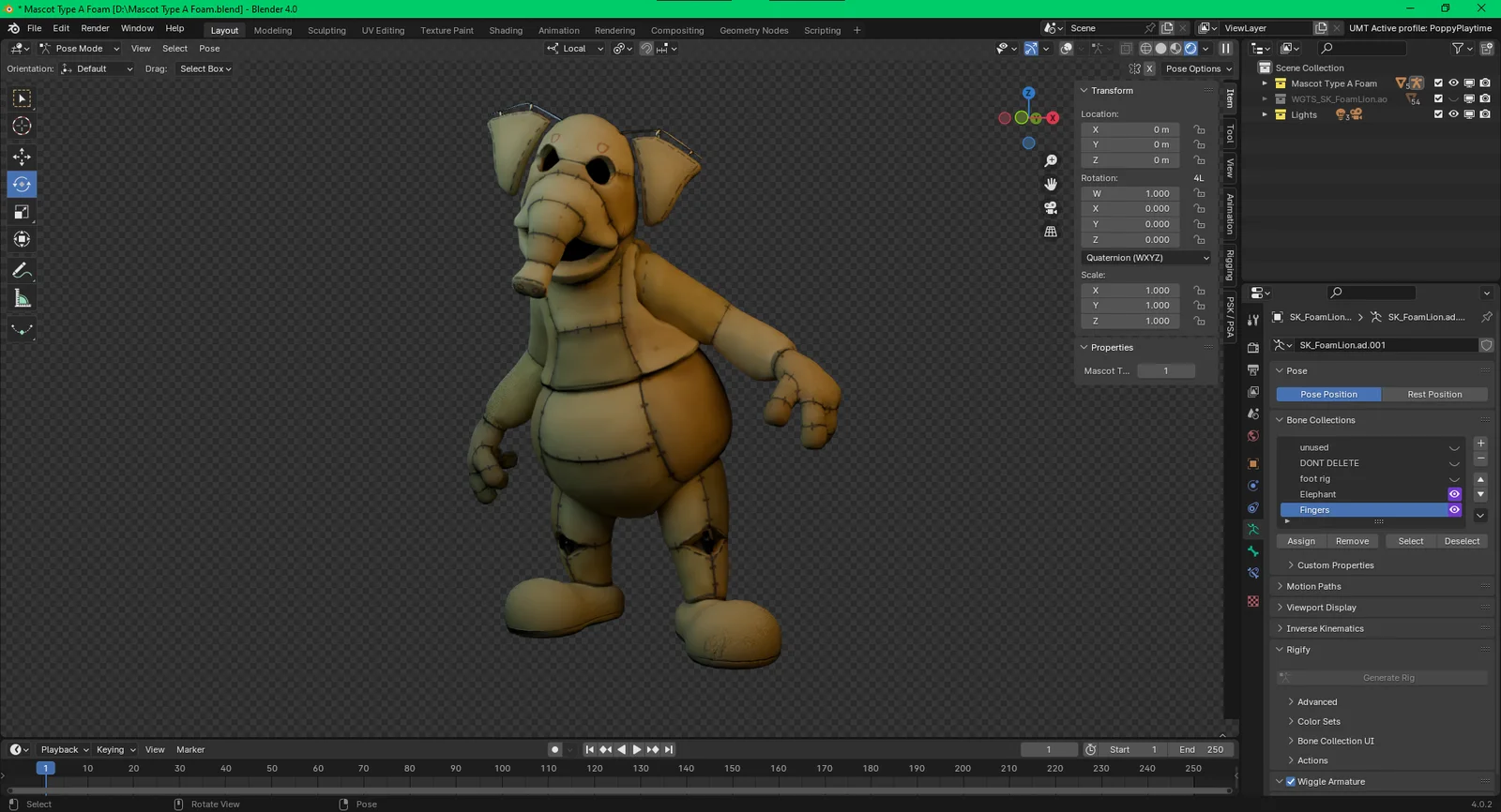 This collection provides 3D character models and rigs of the Type A foam mascots, extracted directly from the game Five Nights at Freddy's: Secrets Of The Mimic. The provided rig includes a custom driver configured on the root bone, enabling users to easily switch between the different foam mascot variations.