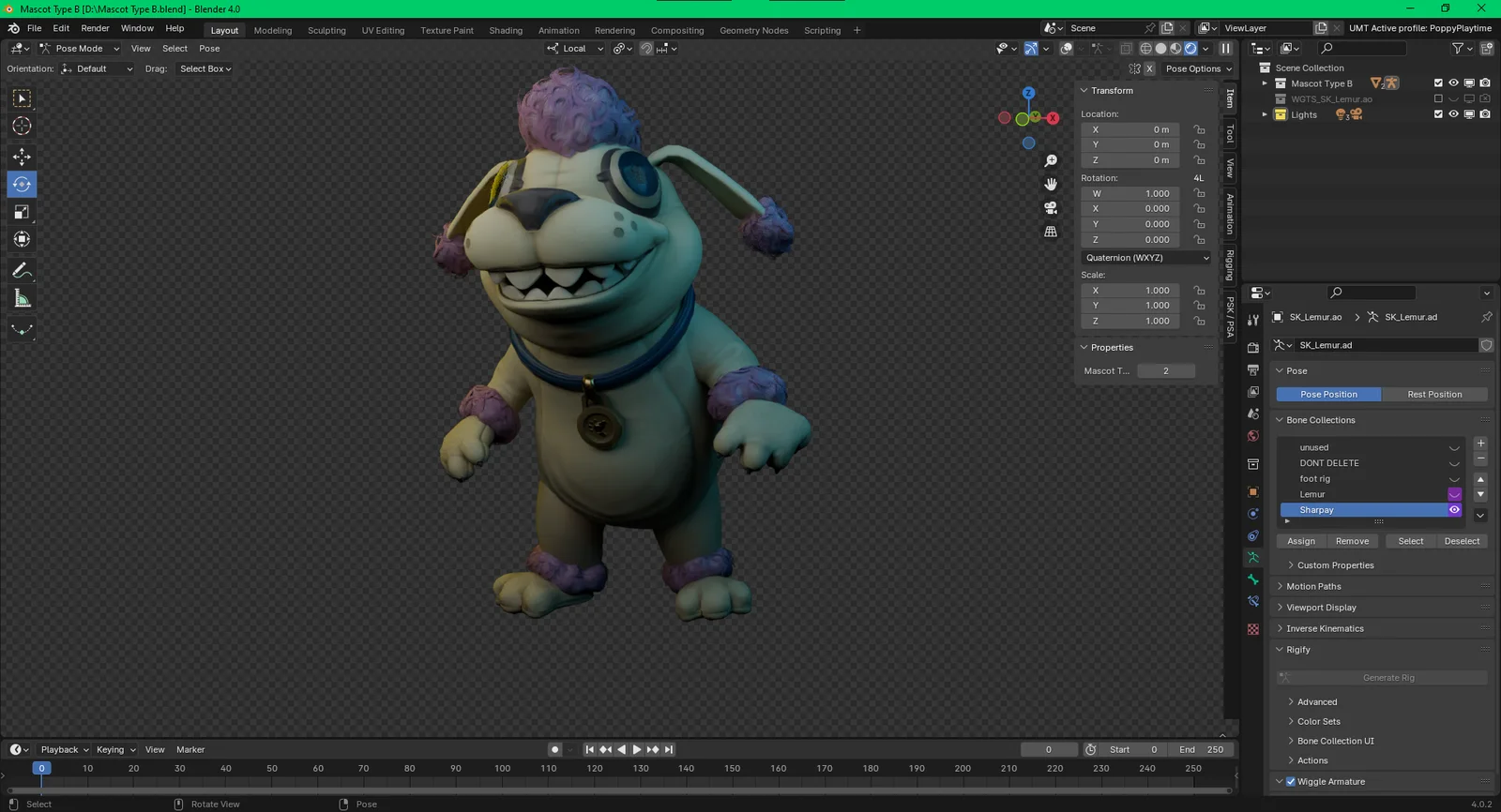 SOTM Mascot Type B is a character model extracted from the video game Five Nights at Freddy's: Secrets of the Mimic. The included Blender rig features a driver attached to the root bone, which allows users to toggle between different type B mascot variations.