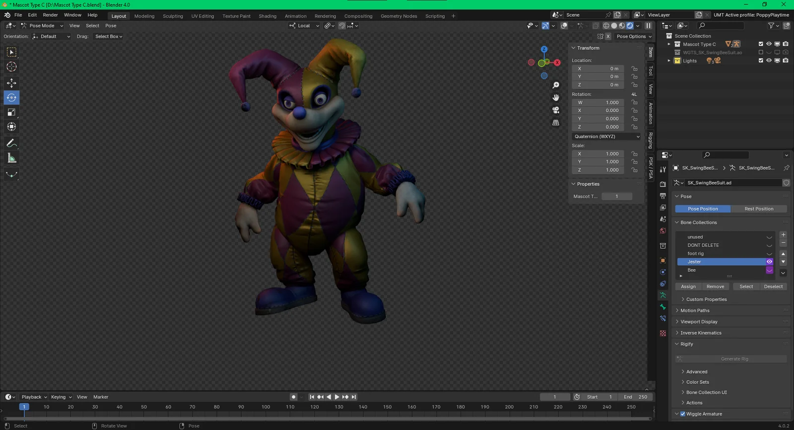 A collection of rigged 3D models of the Mascot Type C (Mycelium Men) extracted from Five Nights at Freddy's: Secrets of the Mimic. The provided Blender 4.0 file includes a specialized driver setup on the root bone, allowing users to easily switch between the different Type C mascot variations.