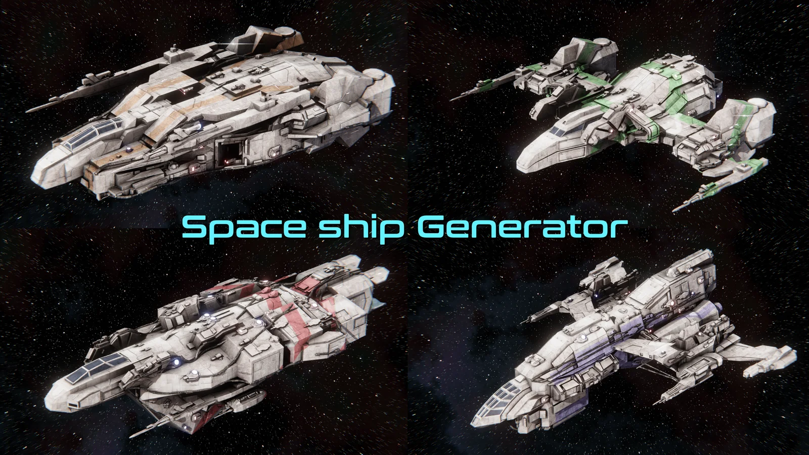 Space Ship Generator is a procedural creation tool built with Blender's Geometry Nodes for generating customized 3D spaceships. The system allows for one-click randomization and provides specific controls for global shapes, secondary forms, hull plates, wings, cockpits, thrusters, pipes, and greebles. Users can adjust parameters such as seed, density, scale, and offset for individual components. The tool includes four preset files, integrated shaders with textures, and a space environment setup featuring stars and a nebula.