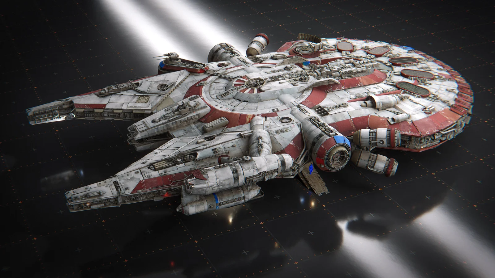 The model is built with 2.6 million polygons and relies on two 4K trimsheet textures to remain memory efficient. It comes packed with a custom wear-and-tear shader designed specifically for Blender. The ship does not feature a fully modeled interior aside from a low-resolution cockpit, and is not intended for extreme macro close-ups.