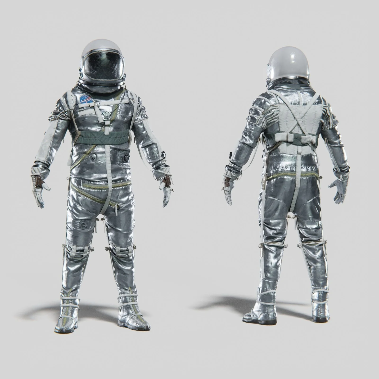 A high-poly 3D model of the NASA Mercury Navy Mark IV spacesuit, famously worn by the Mercury Seven astronauts. The model was created using reference photographs of the actual equipment to maintain accurate proportions and details.