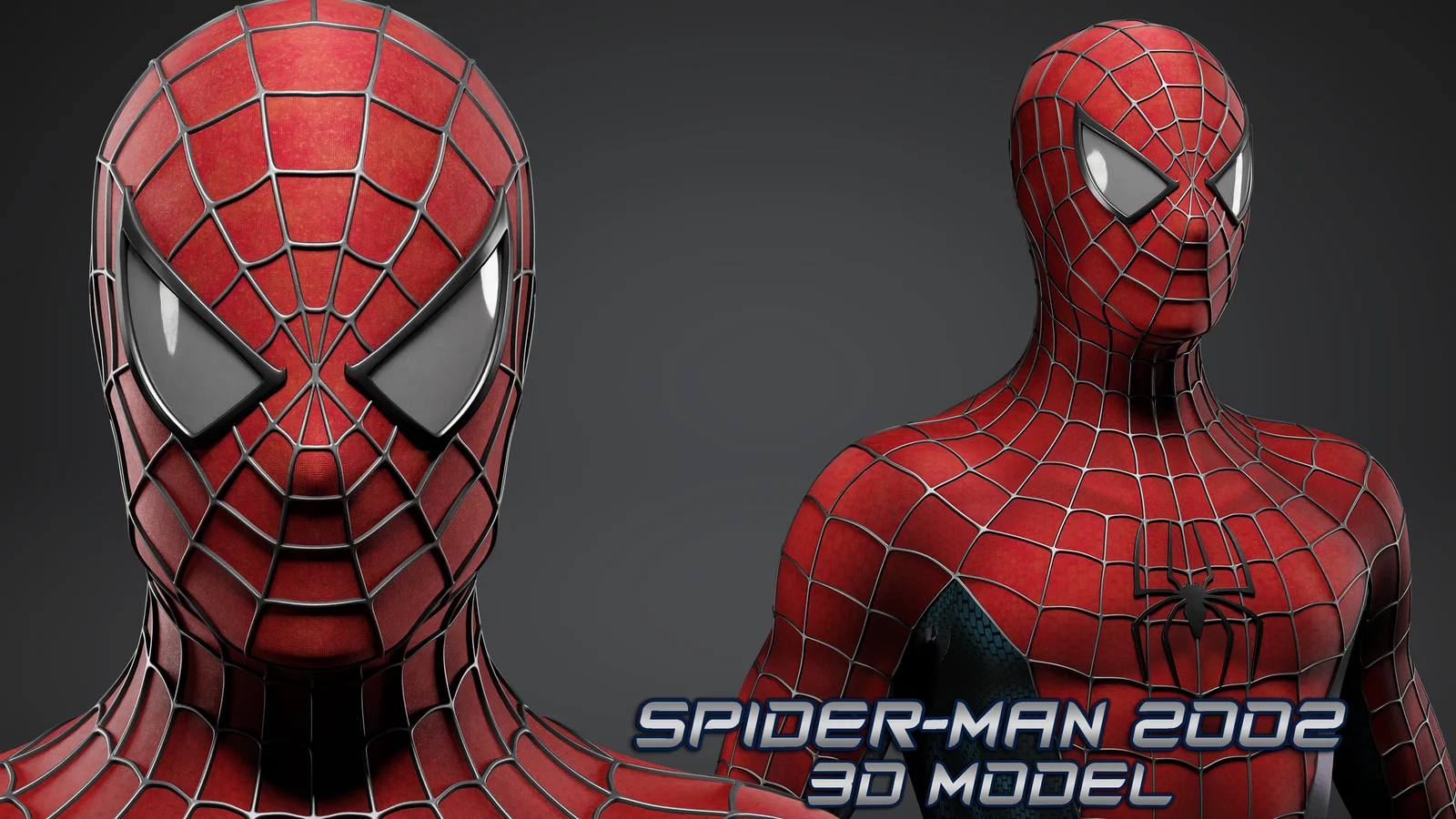 A rigged 3D character model based on Tobey Maguire's portrayal of Spider-Man. The model features accurate sewing patterns on the suit and consists of 254,000 total polygons. It is provided in both .blend and .fbx file formats.