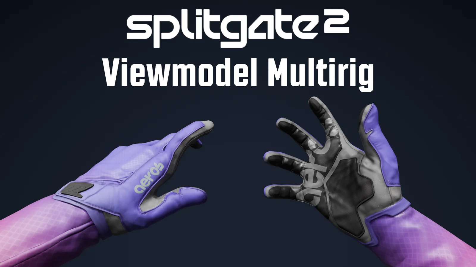 This collection provides a viewmodel multirig featuring assets from Splitgate 2. It contains 41 distinct arm meshes equipped with their original textures, intended for first-person perspective animation. The included Blender files offer setups compatible with both EEVEE Legacy and EEVEE Next render engines.
