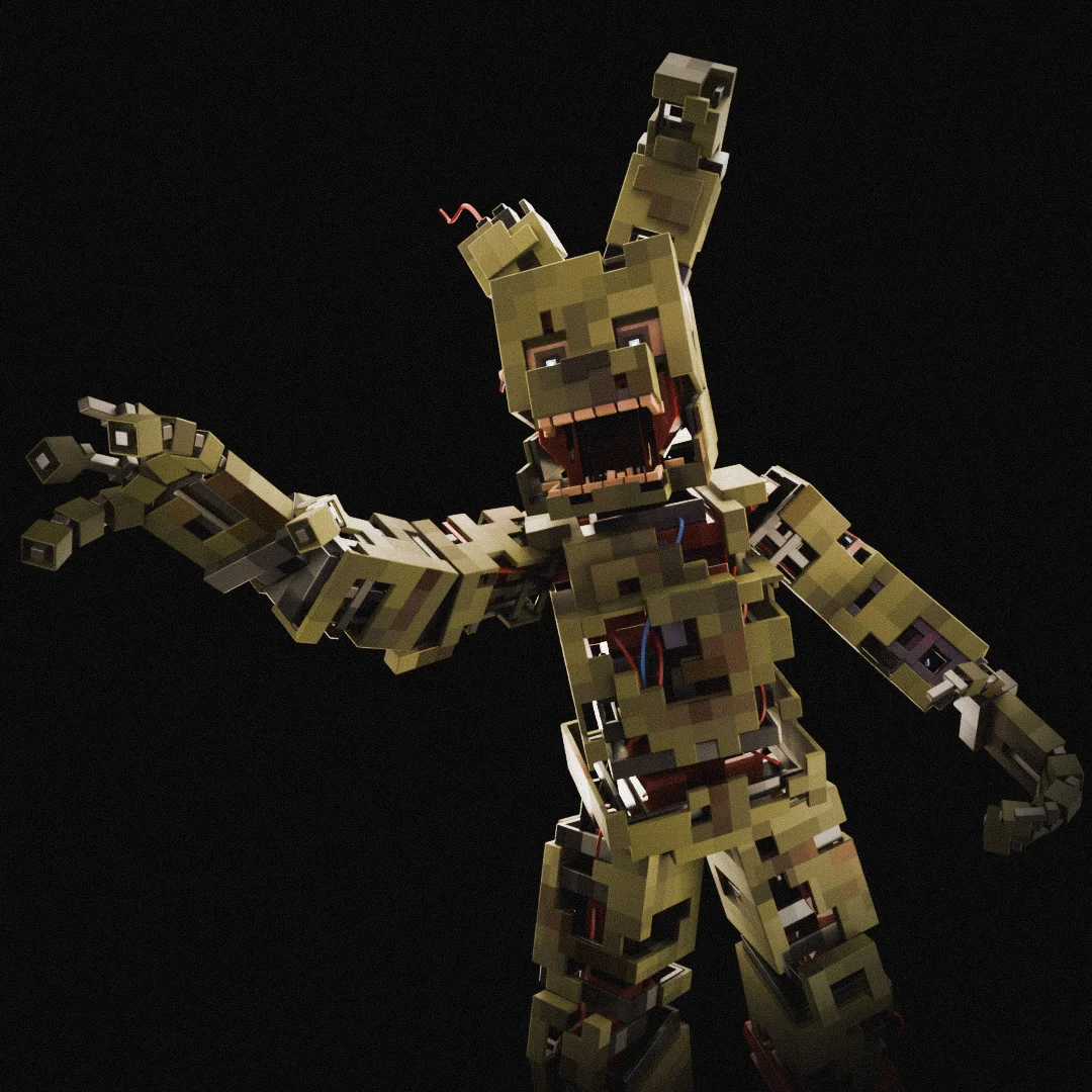 This product provides detailed, rigged 3D models of Springtrap and Spring Bonnie, inspired by their design in Dead by Daylight. The Springtrap model includes a fully modeled interior structure, featuring a complete springlock endoskeleton and internal flesh details. Both character models are built for Blender and include updated rigs for posing and animation.