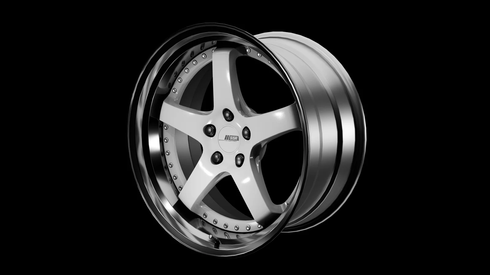 A photomatched, game-ready 3D model of the SSR Professor SP4 wheel. It is modeled with primarily quad-based topology. The package includes high-quality PBR textures: Base Color, Metallic, Roughness, Normal, and a separate Ambient Occlusion map. The model is provided in FBX format.
