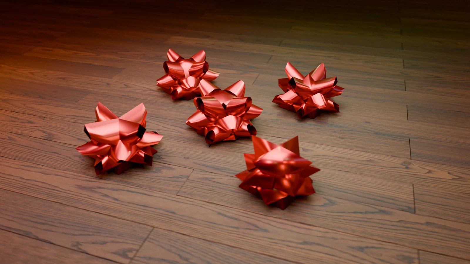 A low-polygon 3D model of a star-shaped Christmas bow designed for gift box decorations. The asset includes a native Blender project file and an FBX export for general use. It features a level of detail (LOD) system to optimize performance when viewed from a distance.