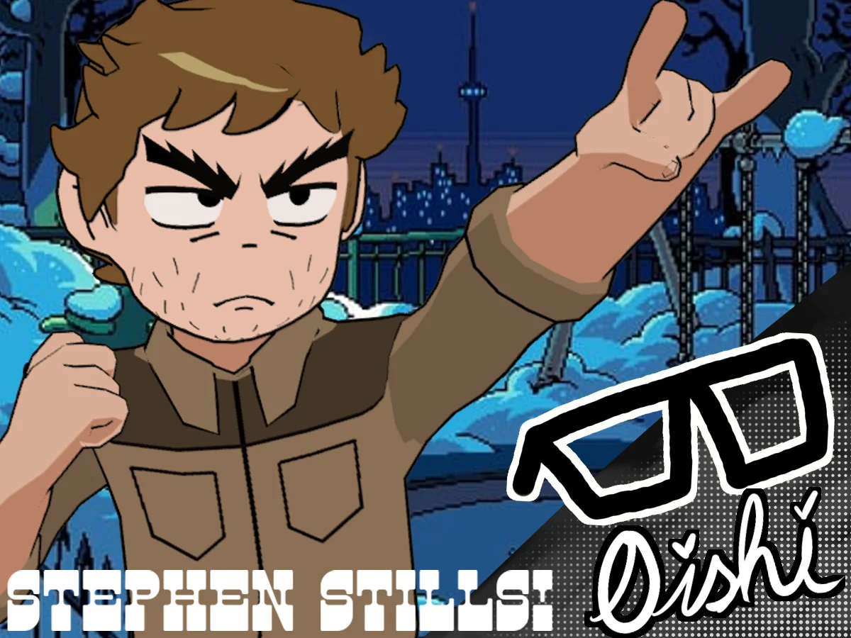This is a fan-made 3D character model of Stephen Stills based on his appearance in the animated series Scott Pilgrim Takes Off. The product includes the character model, his guitar prop, and an alternate color palette. It is provided in both FBX and native Blender file formats.