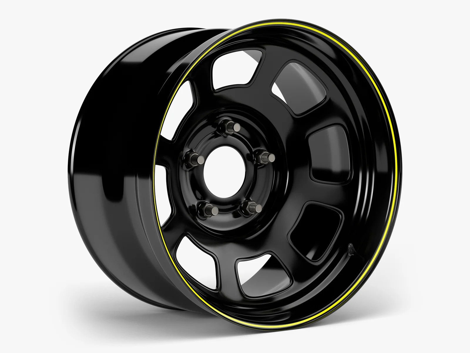 A detailed 3D model of a 15 by 10-inch stock car or NASCAR racing wheel. The model is built to real-world scale and is centered on the origin. It includes a 4K diffuse texture map and is available in standard FBX and OBJ formats for integration into diverse scenes.