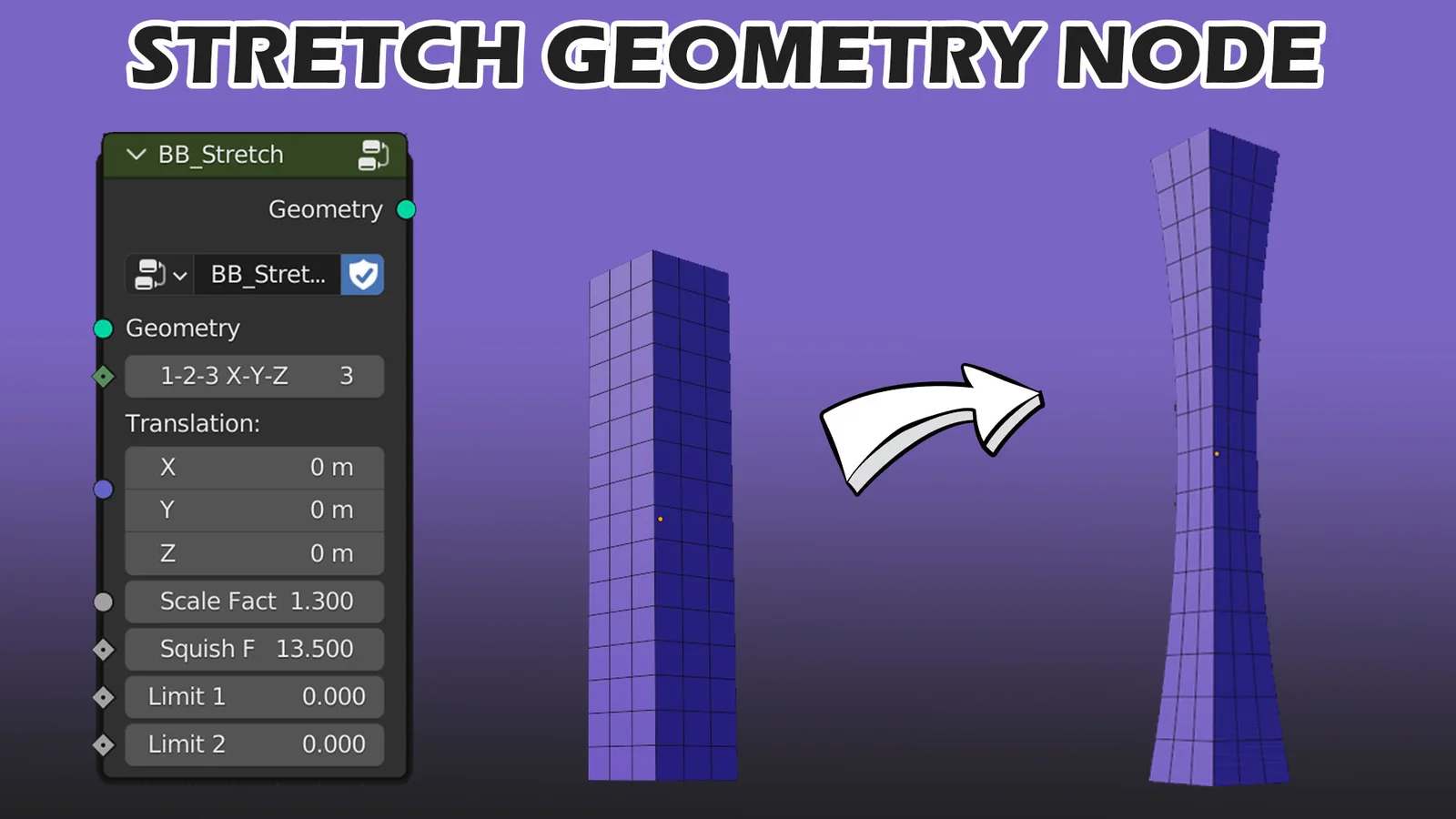 This geometry node group replicates the stretch mode of Blender's built-in Simple Deform modifier. It allows users to stretch geometry procedurally directly within a node tree setup, enabling non-destructive mesh manipulation alongside other node-based operations.