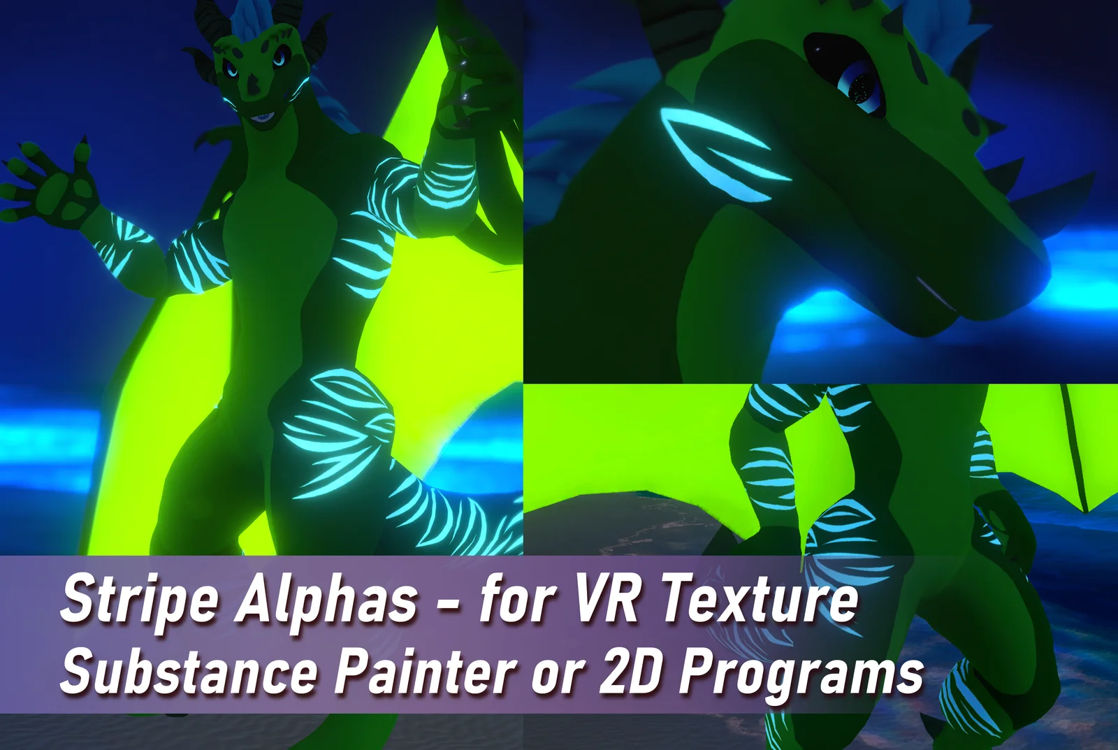 This product provides a collection of stripe design alpha maps in PNG format. These alphas are designed to assist in texture painting creatures or characters that require striped patterns. The masks can be combined, isolated, or edited to fit specific texturing workflows.